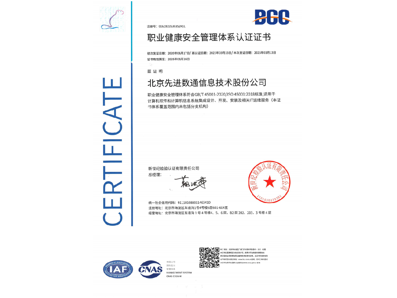 • ISO45001职业健康安全管理体系认证